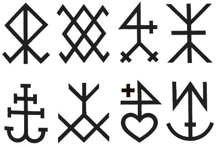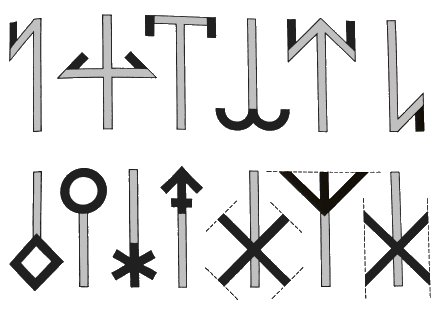 Cette inspiration géométrique, souvent d’origine runique, s’est progressivement enrichie et sophistiquée en intégrant avec le développement de l’alphabétisation et de la christianisation des chiffres et des lettres, des figures stylisées, des symboles universels de type croix ou étoiles et des caractères astrologiques ou astronomiques (pentagrammes).