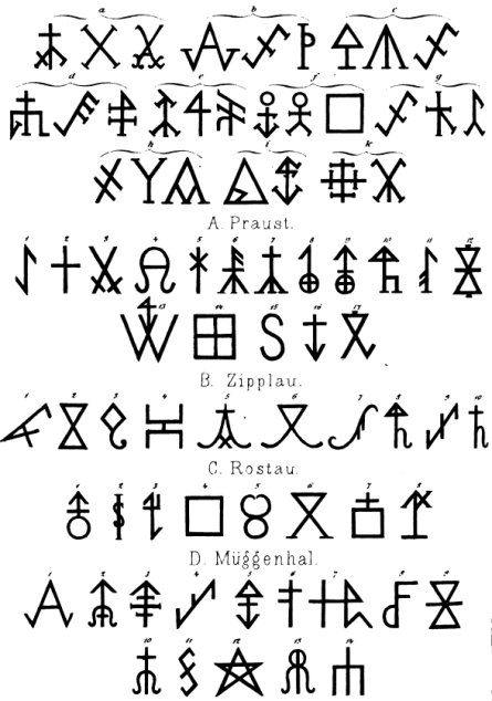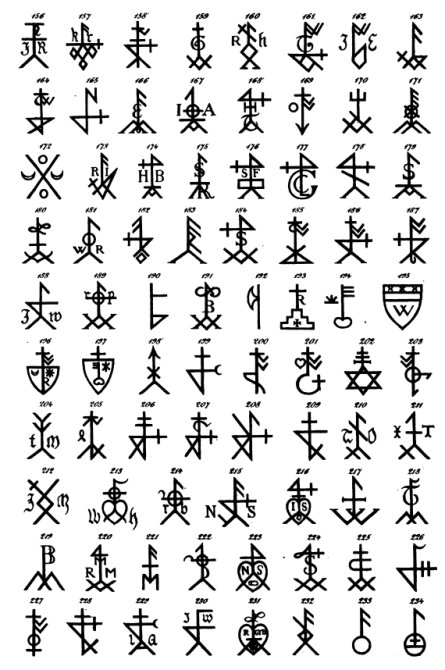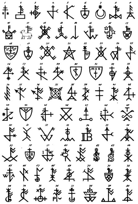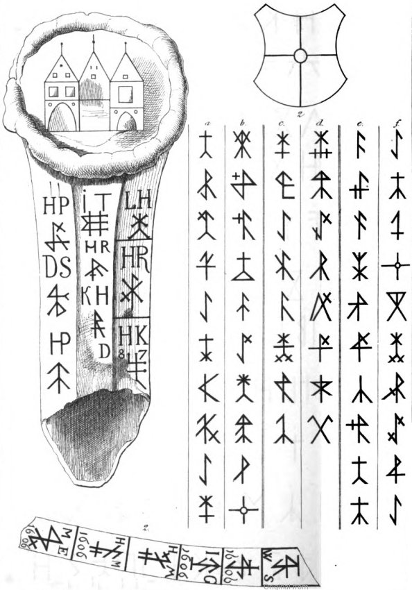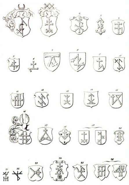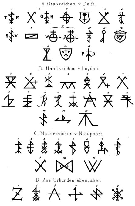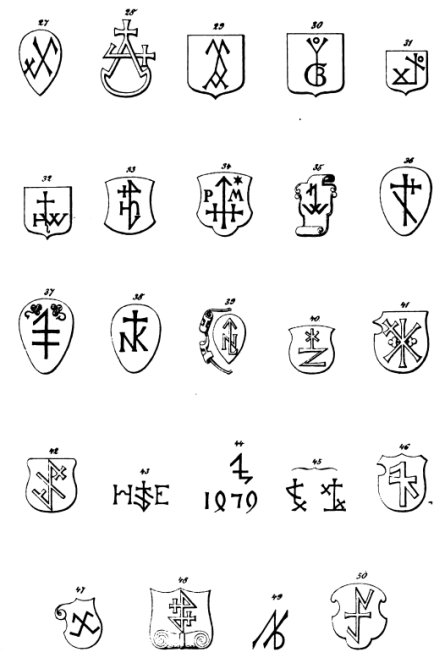 EN 1870, LE JURISTE, GERMANISTE ET HISTORIEN PRUSSIEN Carl Gustav Homeyer publia un ouvrage qui reste une référence sur le sujet des marques de maison, Die Haus- und Hofmarken. Dans ce livre il recense des marques de maison telles qu’elles étaient utilisées en Islande, en Norvège, en Frise orientale et en France tout en commentant la forme, le contexte d’utilisation, l’objet et la signification juridique des premiers signes de propriété.